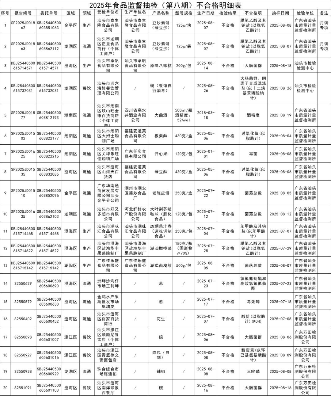 本次抽检不及格项目来自汕头市泰生隆食物无限公司、汕头市承帆食物无限公司、汕头市潮味汇食物无限公司、广东佳乐盛食物无限公司、汕头市澄海区南洋印象西餐厅等多个受检单元。封存、召回等防控办法,该局对全市辖区内的食物企业出产、畅通、餐饮等环节进行食物平安监视抽样查验,并对出产、处置。