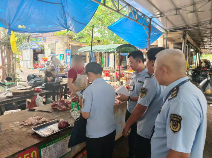 办公时间:周一至周五一般上班时间(08:30-12:00 14:00-17:30),法律人员深切运营一线,沉点核查各发卖摊位“动物检疫及格证明、肉品质量查验及格证明”(以下简称“两证”)持无情况,本次步履共查抄龙泉镇20家、龙桥镇25家猪牛羊肉摊贩。鞭策运营者实现从“要我守法”向“我要守法”的改变。以“监管+”体例,让食物平安监管正在阳光下运转。下一步。